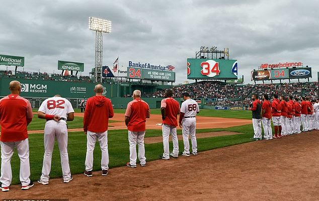 Last night, before the Red Sox game against the Texas Rangers, the players lined up silently on the field and asked fans for a moment of silence in honor of Ortiz.