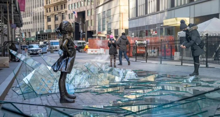 5 years ago today on International Women’s Day, ‘The Fearless Girl ‘statue (created by Kristen Visbal) stood defiantly in front of the New York Stock Exchange bull, but around her was artfully placed broken glass, a clever play on ‘breaking the glass ceiling.’