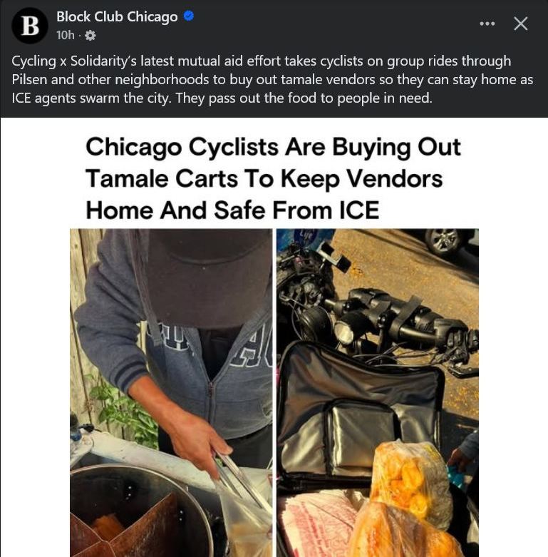 Days after a group of cyclists had bought out a tamale vendor’s cart, the man found them days later to say immigration agents were spotted on his block just hours after. “You saved my life,” the man told them.