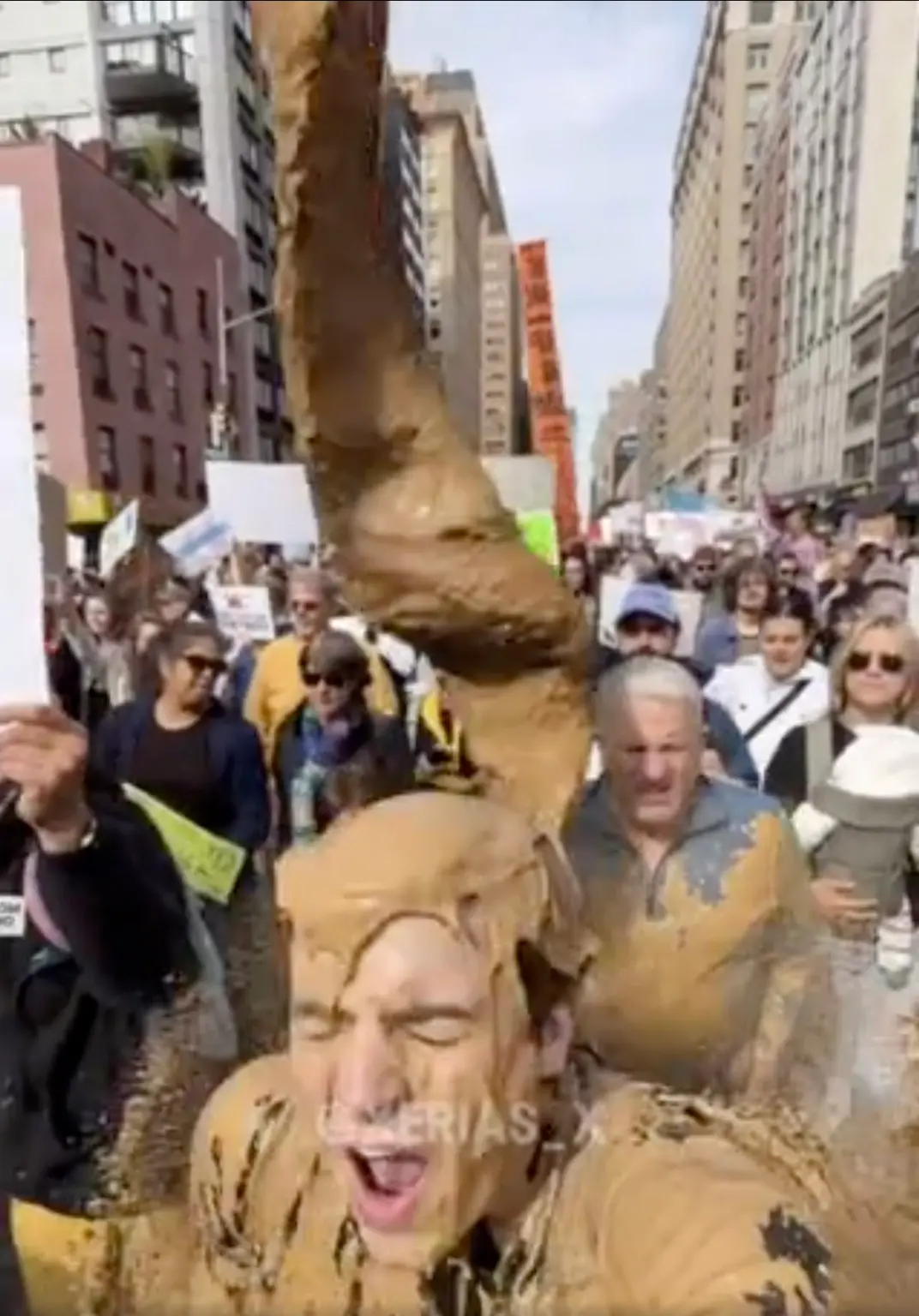 In response to the historic ‘No Kings’ rallies in the States and around the world, Trump posted this AI generated video of him flying a fighter plane with the words “King Trump” on the side, and dumping brown ‘raw sewage’ on to protesters.