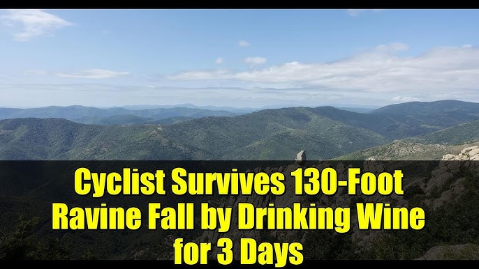 An older (77) French cyclist who went into town to pick up some wine slipped off the road and fell 130 feet into a ravine in the Cévennes mountain region in France.