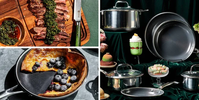 The brand’s signature hybrid technology combines the best of stainless steel and nonstick surfaces, creating pans that sear like professional steel while still being non-stick.