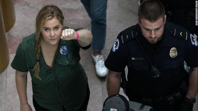 Among the 300 arrested yesterday was comedian Amy Schumer and model-actress Emily Ratajkowski in clothes!) who used their social media to urge people to fight the nomination.