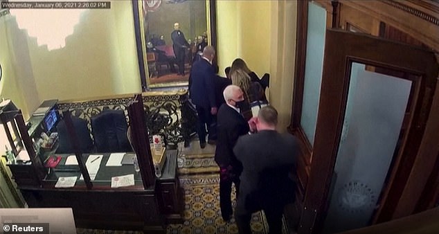 She then shared a video of Pence, his family, Secret Service agents and the military officer holding the ‘football’ running to safety.