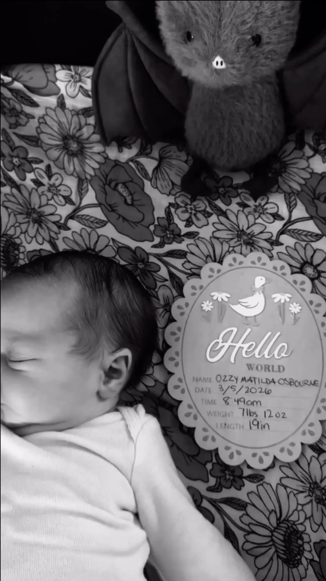 Baby Ozzy is named after her Dad’s heavy metal icon father, Ozzy Osbourne, who died at 76 in July 2025.