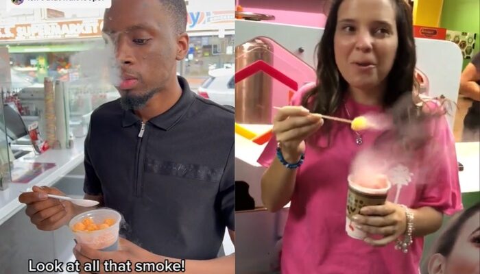 Tik Tok is responsible for some crazy trends, and the latest is called ‘Dragon’s Breath’ a liquid nitrogen candy. The snack dipped in liquid nitrogen, causes vapor to billow out of the eater’s nose and mouth.