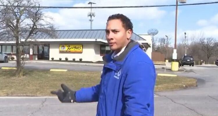 Myles Harris was preparing to shoot a story when he turns to look at traffic and recognizes an approaching car: ‘That’s my Mom, hold on’ he says with mock exasperation.