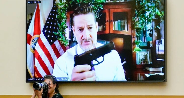 During a debate on gun control, Florida Congressman Greg Steube pulled out multiple handguns. Fortunately, he was attending via webcam.