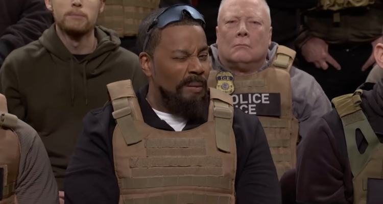 The premise: White House Border Czar Tom Homan (Pete Davidson) meets with ICE agents (Kenan Thompson, James Austin Johnson, Mikey Day, Ben Marshall, Andrew Dismukes, Jeremy Culhane) in Minneapolis.