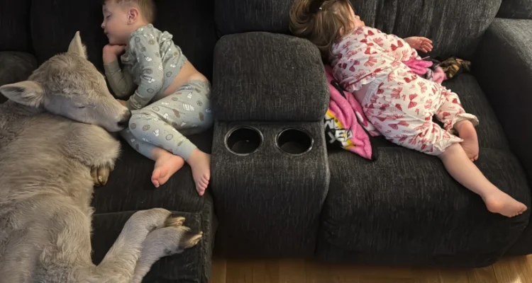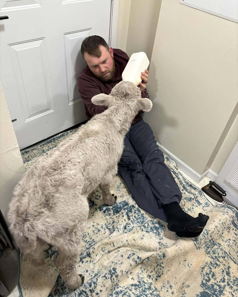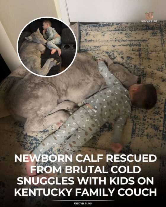 So they brought the calf inside, cleaned her up and put her on the living room couch where she quickly fell asleep.
