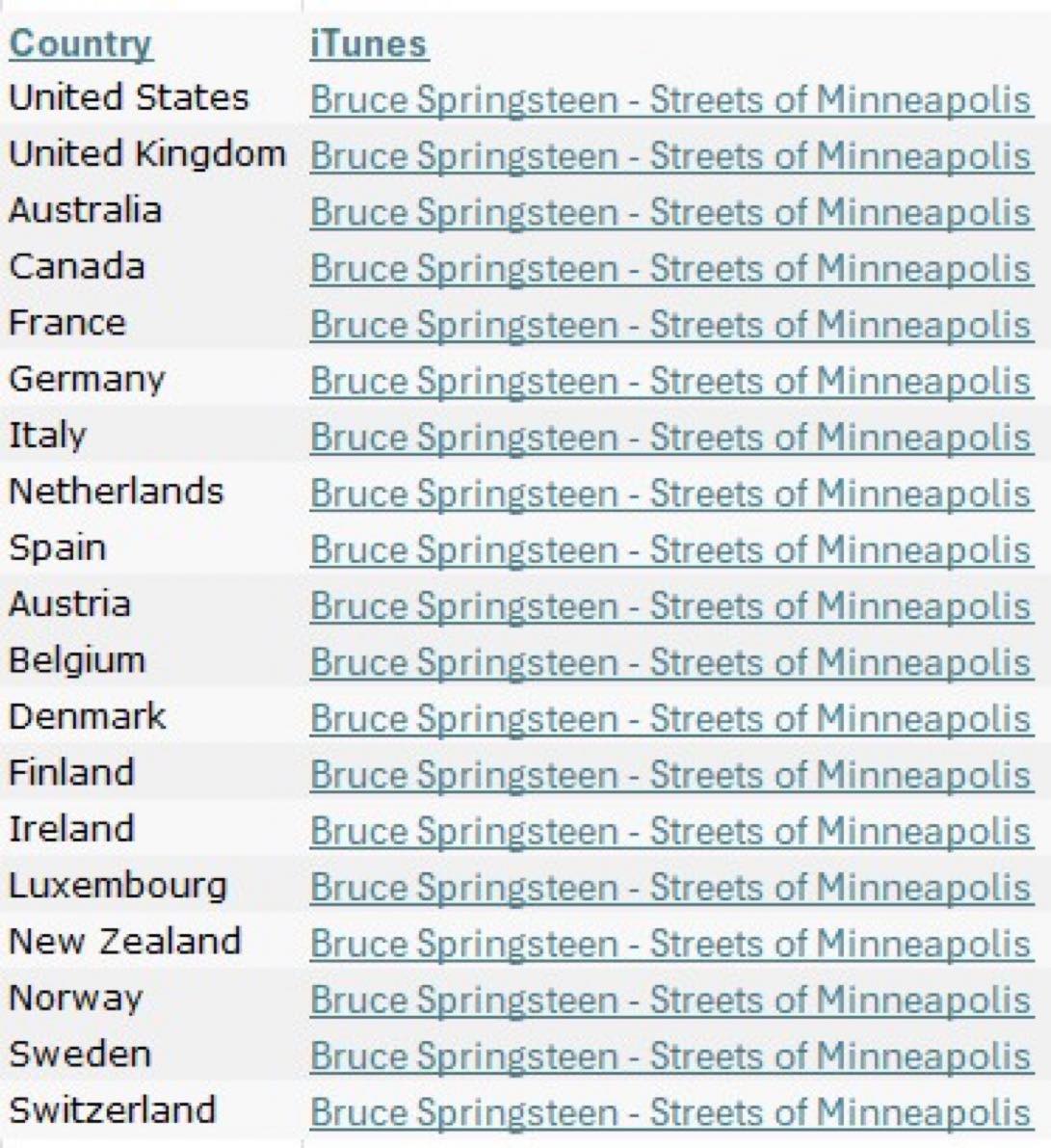 UPDATE: Bruce Springsteen’s new protest song ‘Streets of Minneapolis’ is a massive hit, reaching #1 in 19 countries.