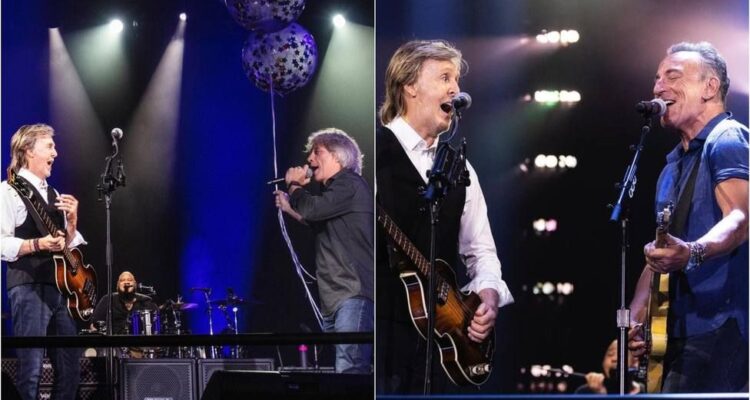 Jon Bon Jovi surprised Paul McCartney during his New Jersey concert and hands him balloons on stage ahead of him turning 80.
